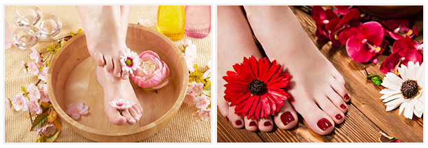 Spa pedicure: classic pedicure, foot massage, paraffin bath. Spa pedicure will help to reduce swelling, get rid of heaviness, and bring back the baby-like softness of your feet.